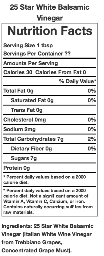 Our delicious white balsamic a treat that features a sweet, smooth taste, and thick rich consistency. It's Perfect for lighter-colored glazes and sauces or simply drizzled over fresh fruit in the spring and summer months. Always a refreshing and delicious taste adventure!