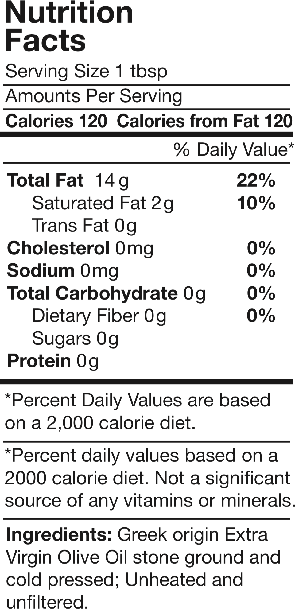 Process: Stone-ground and cold-pressed using centuries-old Greek tradition.