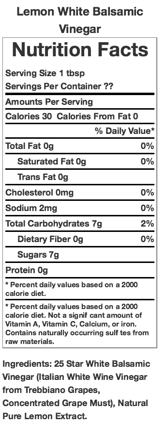 Profile: Crisp lemon zest blended with smooth, premium white balsamic.