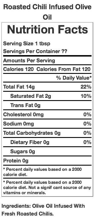 A hot, spicy combination of slow roasted chili's and premium olive oil, infused together. Even the color translates heat.This one keeps on giving...give it a few seconds for the full spicy flavor explosion!